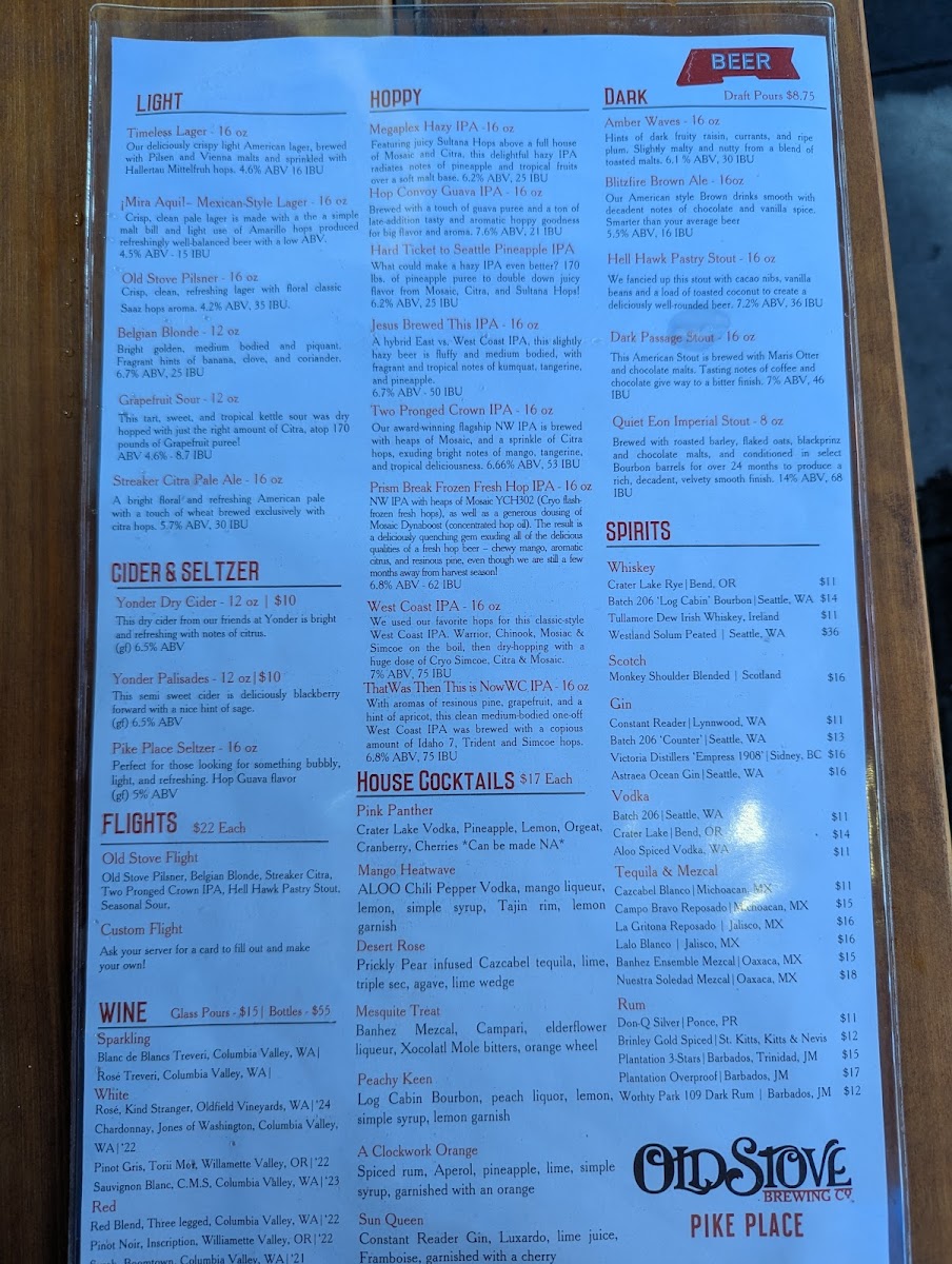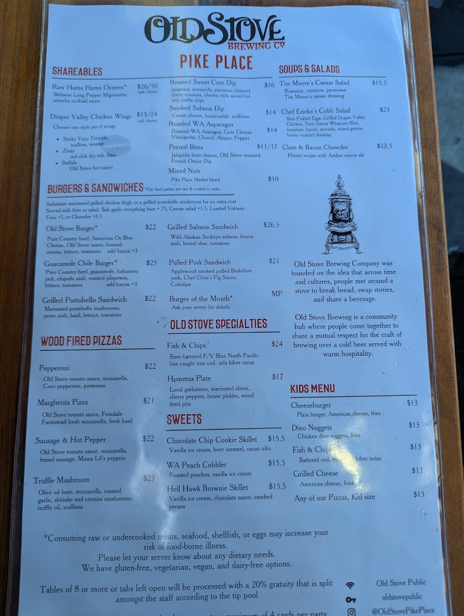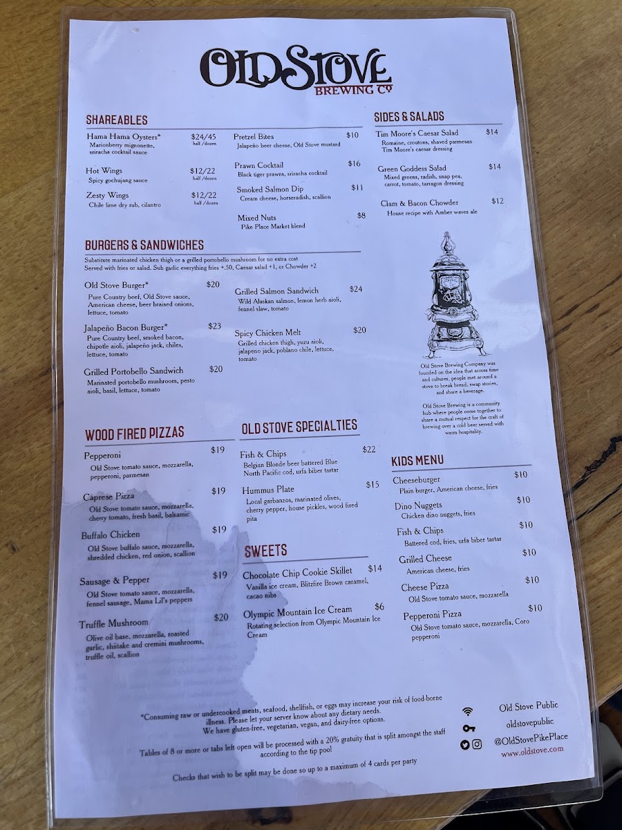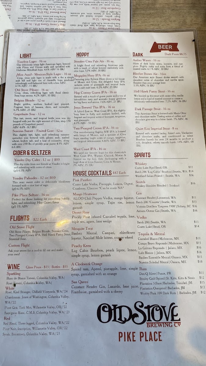 Welcome to Old Stove Brewing Co, an inviting brewpub nestled in the heart of Seattle's vibrant Pike Place Market. Located at 1901 Western Ave, this stylish establishment is the perfect spot for those looking to indulge in delicious craft beer and mouth-watering cuisine while soaking in breathtaking views of the waterfront.