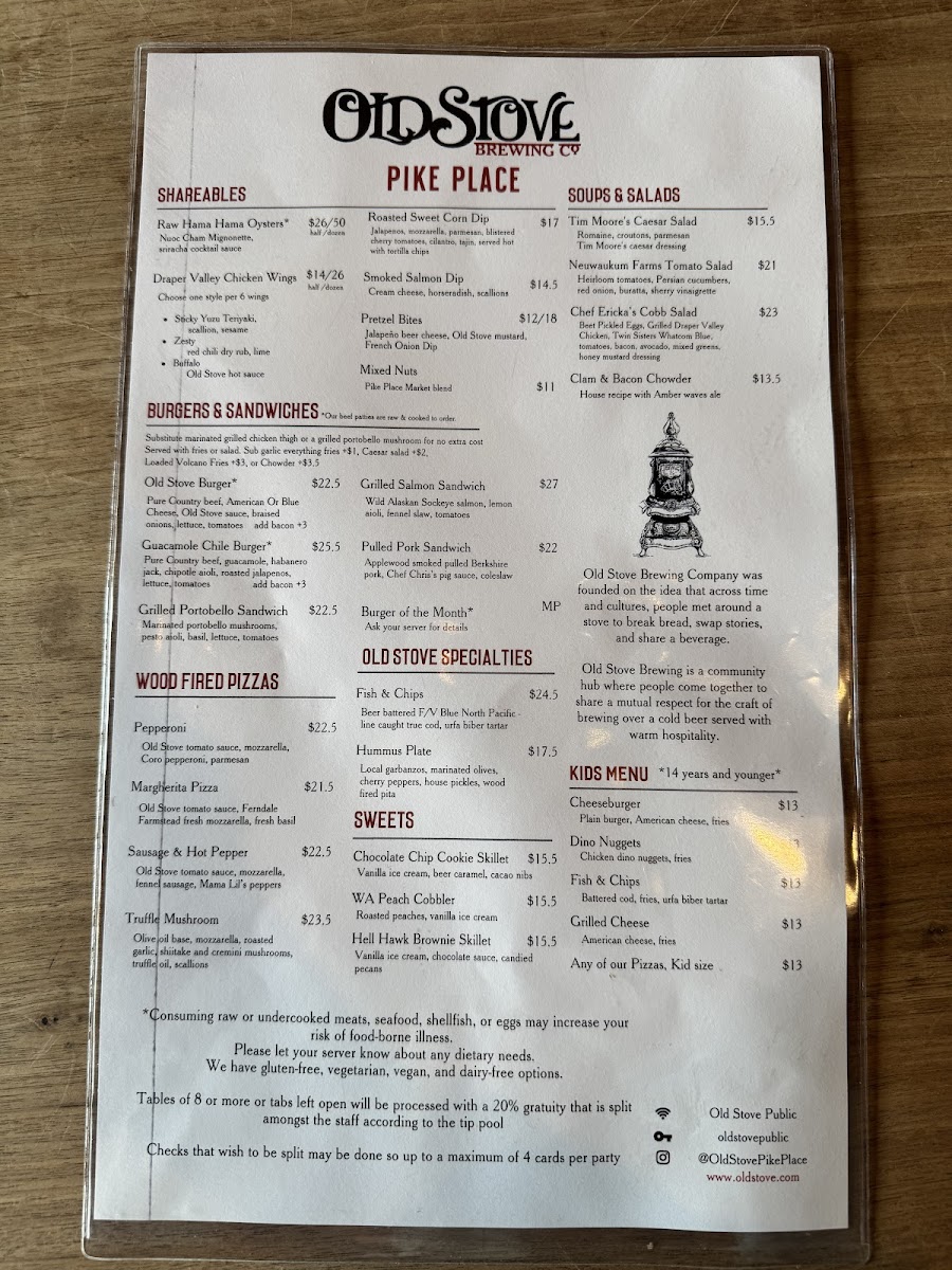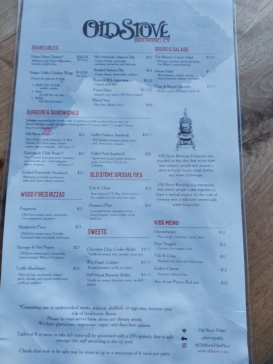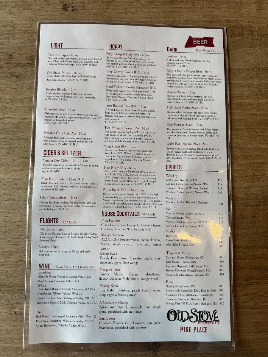 Welcome to Old Stove Brewing Co, an inviting brewpub nestled in the heart of Seattle's vibrant Pike Place Market. Located at 1901 Western Ave, this stylish establishment is the perfect spot for those looking to indulge in delicious craft beer and mouth-watering cuisine while soaking in breathtaking views of the waterfront.